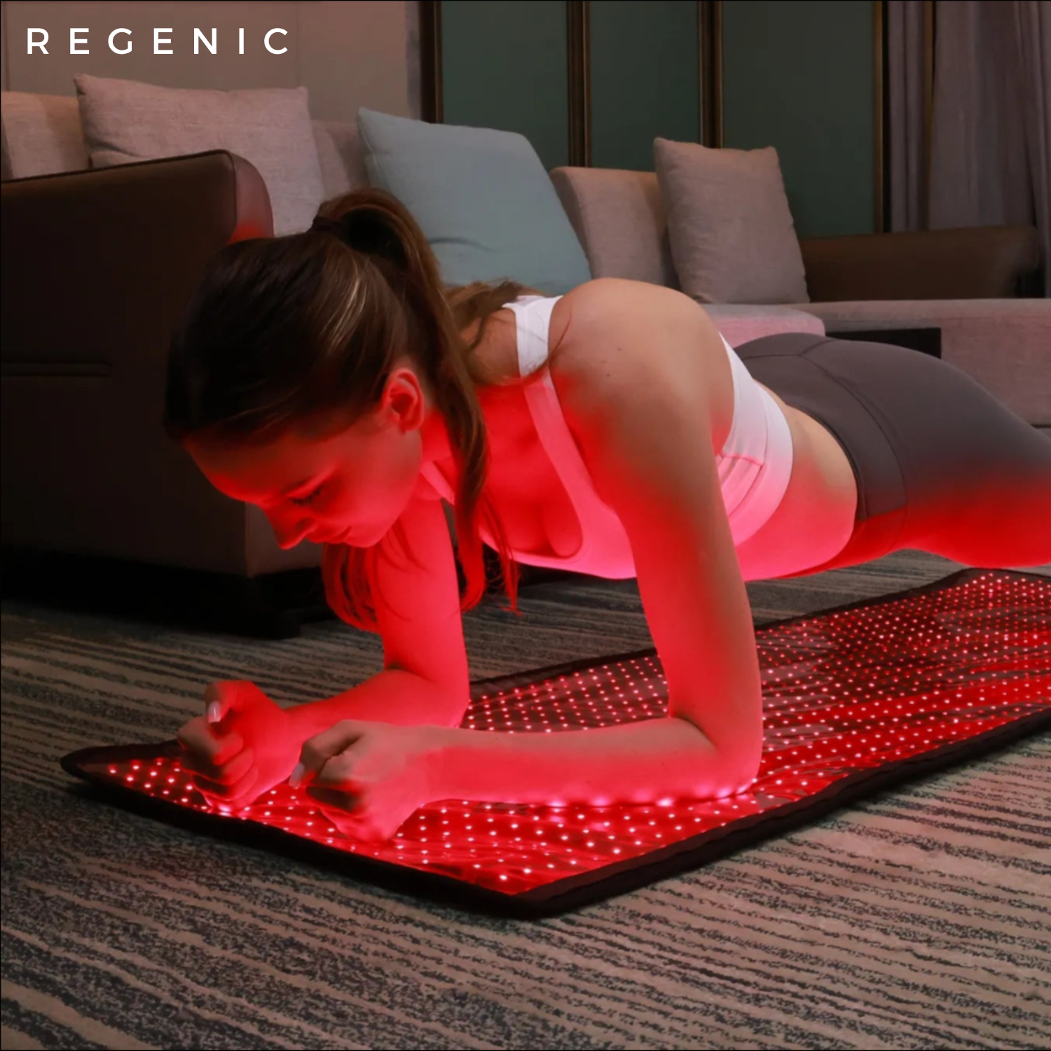 The REGENIC Yoga Mat delivers this light evenly across the body while you stretch, breathe, and ground yourself — helping align both body and mind.